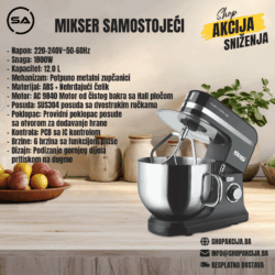 Naši mikseri dolaze opremljeni raznim dodacima, što vam omogućuje da se s lakoćom uhvatite u koštac sa širokim rasponom zadataka. Priložena pjenjača, kuka za tijesto i lopatica za miješanje olakšavaju prebacivanje između različitih recepata bez potrebe za više uređaja. Elegantan dizajn ne samo da dodaje dašak elegancije vašoj kuhinji, već također osigurava jednostavno skladištenje i rukovanje. Osim toga, s kontrolama koje su jednostavne za korištenje i laganom konstrukcijom, možete uživati u iskustvu miješanja bez muke, bilo da pripremate brzi doručak ili složeno jelo za večeru.