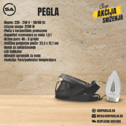 Otkrijte vrhunsko rješenje za odjeću bez nabora s našim izuzetnim asortimanom pegli dizajniranih da zadovolje sve vaše potrebe za njegom odjeće. Naše pegle izrađena su s naprednom tehnologijom koja osigurava glatko klizanje po tkanini, čineći peglanje ne samo učinkovitim nego i ugodnim. Sa značajkama kao što su izbijanje pare, podesive postavke temperature i neljepljive ploče za peglanje, možete se s lakoćom uhvatiti u koštac sa svime, od osjetljive svile do teškog pamuka. Recite zbogom tvrdoglavim naborima i pozdravite čistu, uglađenu odjeću u kojoj izgledate i osjećate se najbolje.
