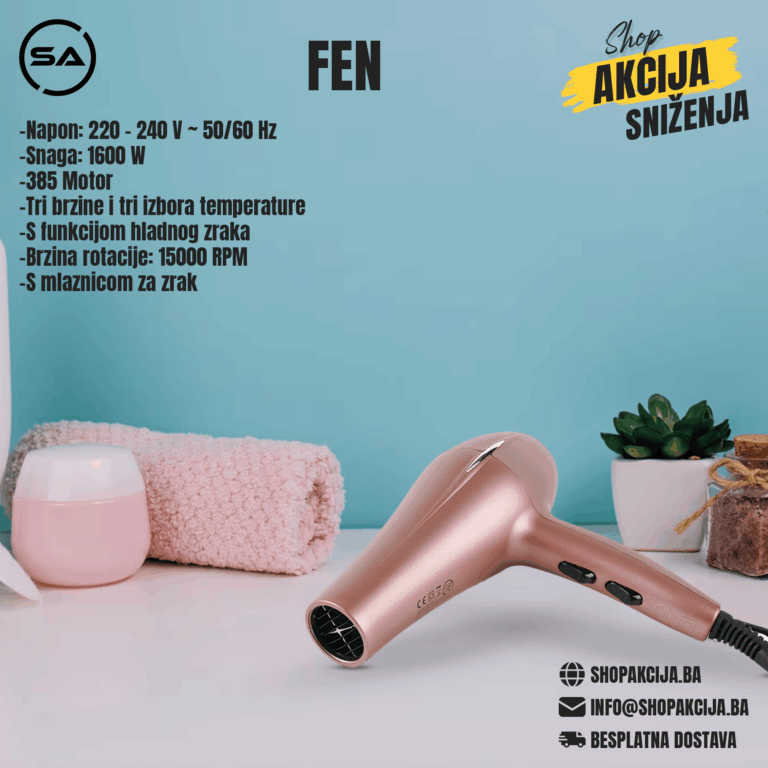 Svako sušilo za kosu u našoj kolekciji izrađeno je naprednom ionskom tehnologijom, koja pomaže u uklanjanju kovrča i povećava sjaj. Ova inovativna značajka djeluje otpuštanjem negativnih iona koji razgrađuju molekule vode, omogućujući brže isparavanje i glađu kosu. Osim toga, naše sušilice dolaze s nizom dodataka, uključujući koncentratorske mlaznice za precizno oblikovanje i difuzore za poboljšanje prirodnih kovrča. Lagan dizajn i ergonomska ručka osiguravaju udobno oblikovanje kose, čak i tijekom dulje upotrebe, što ga čini savršenim izborom za svakodnevno sušenje i posebne prigode.