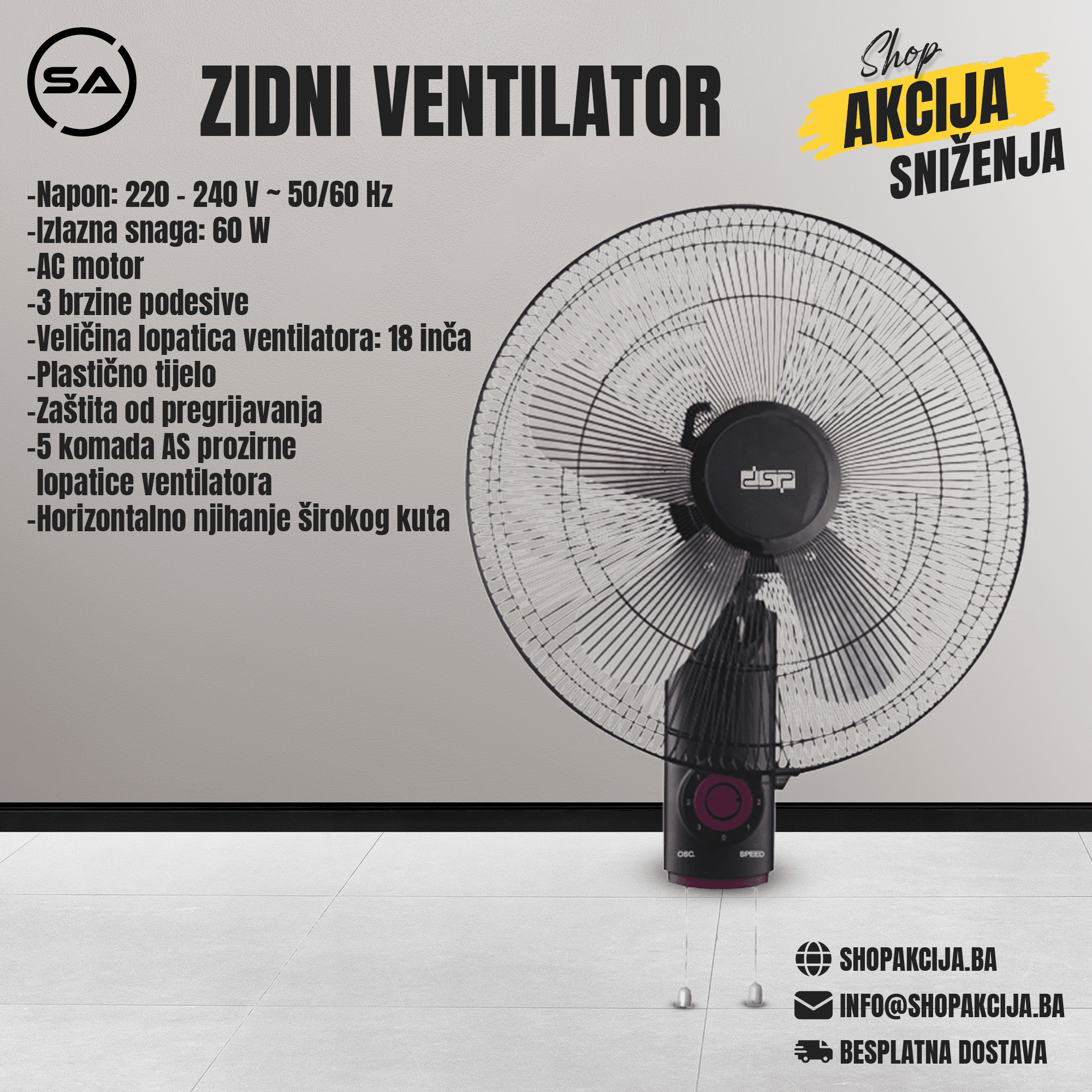 Veličina lopatica ventilatora: 18 inča